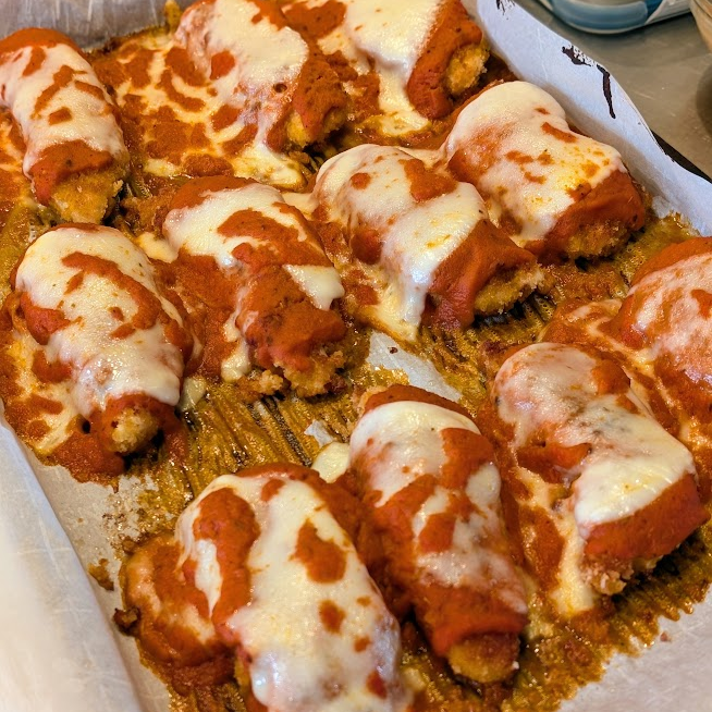 Chicken Parmesan (Crispy breaded chicken topped with melted cheese and a homemade tomato-basil sauce)